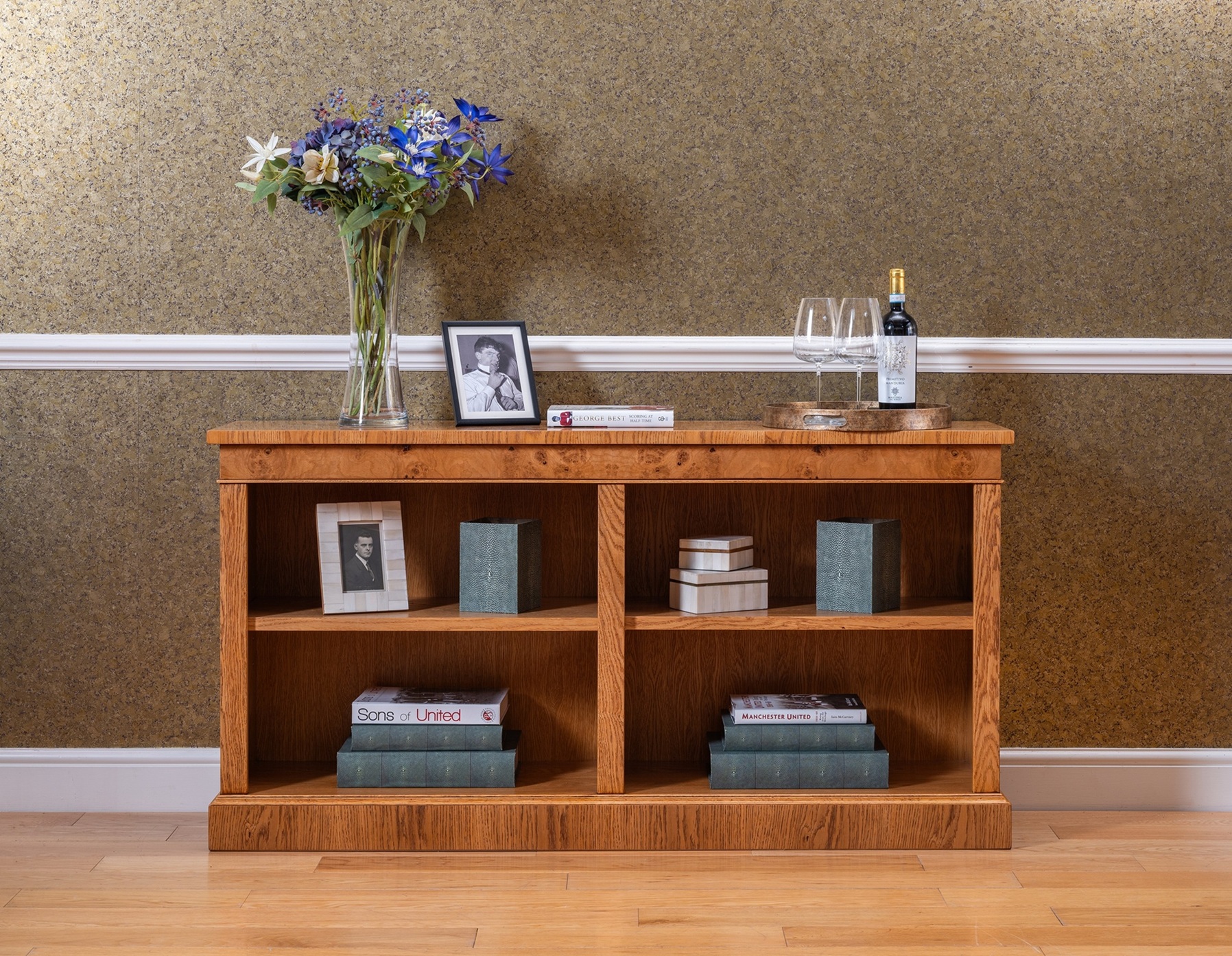 Our display bookcases and corner cabinets are available in bespoke sizes and all finishes including Mahogany, Walnut, Yew, Oak, Rosewood, Ebony, Poplar and Ash.